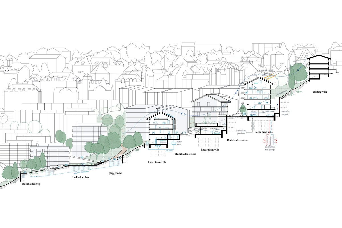 Die den Gletscher bewohnen is an encounter between architecture and reality, but also with the history of St. Gallen through the glacier, its influence on local architecture, the soil, the rocks, the fauna and flora, the relationship between the urban and the rural, the human interactions behind construction, the environment, the car, and shifting social dynamics. The project is not a dogmatic answer, but a set of reflections on a specific reality: the Ruckhalde area, at the edge of the city, where architecture listens to the ground, to time, and to the ways of living yet to come.
